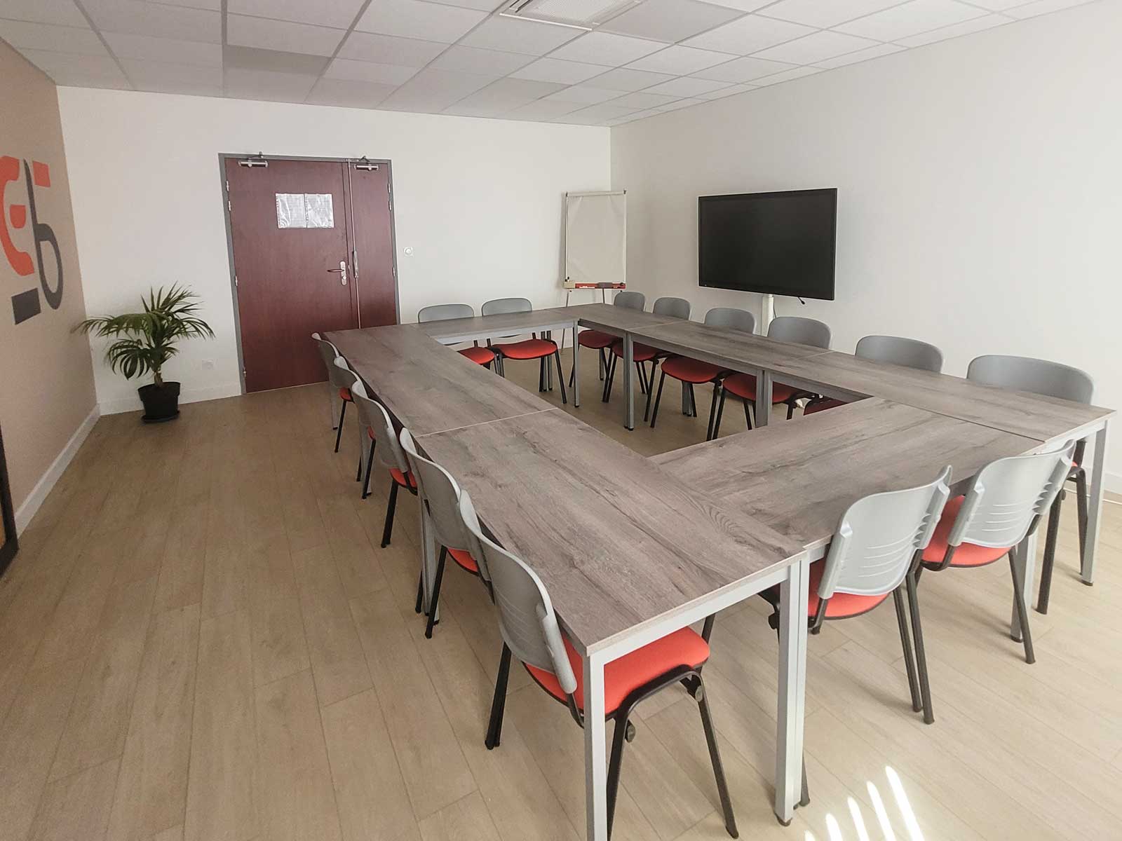 La salle est climatisée et propose un espace de 35m² pouvant accueillir, selon la configuration, jusqu’à 25 personnes (en mode conférence), et 16 personnes (en mode formation avec tables).